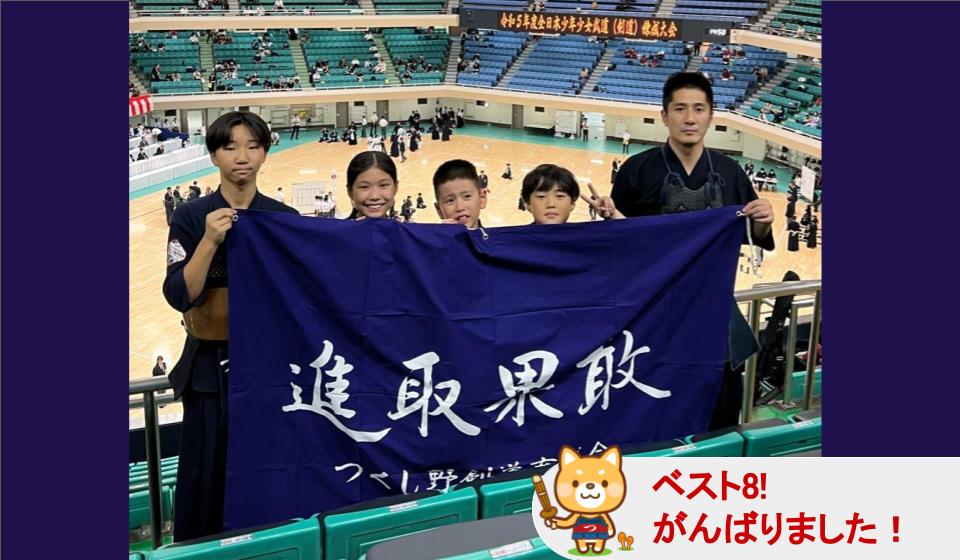 新型コロナウイルス感染拡大に伴い3年間実施されなかった表記大会が、2023年7月23日(日)に開催され、当会から1チーム参加しました。 今大会は当会所属の子どもたちの目標としている大会の1つで、上位進出を目指し、稽古、合続きを読む “令和5年度全日本少年少女武道(剣道)錬成大会”