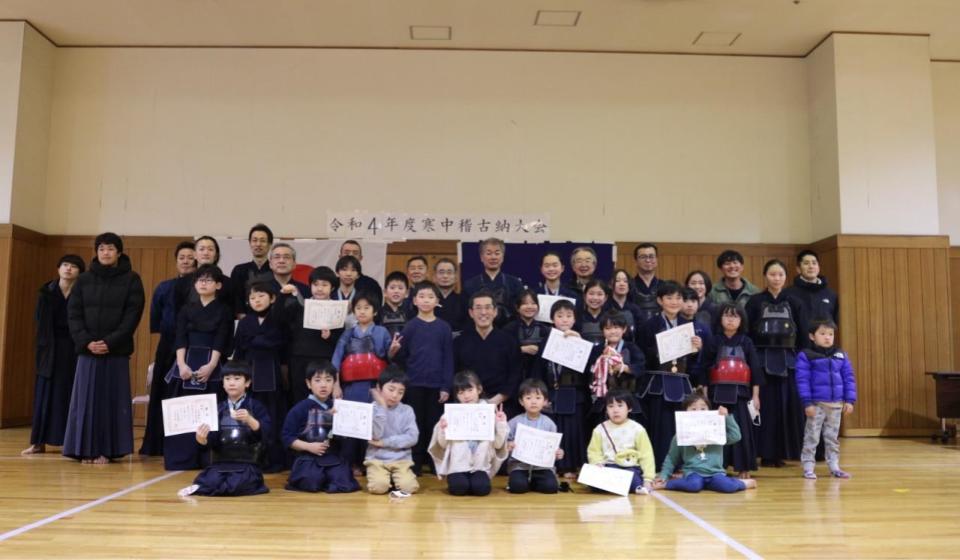 午後は、大人の会員も含めた全会員参加の団体戦を実施し、夕刻からは2022年12月11日に開催された町田剣道祭・町田市少年剣道大会の個人優勝、団体優勝(5連覇)を祝勝を兼ねた懇親会を行い、60名の会員、保護者の方々の親睦を深めました。